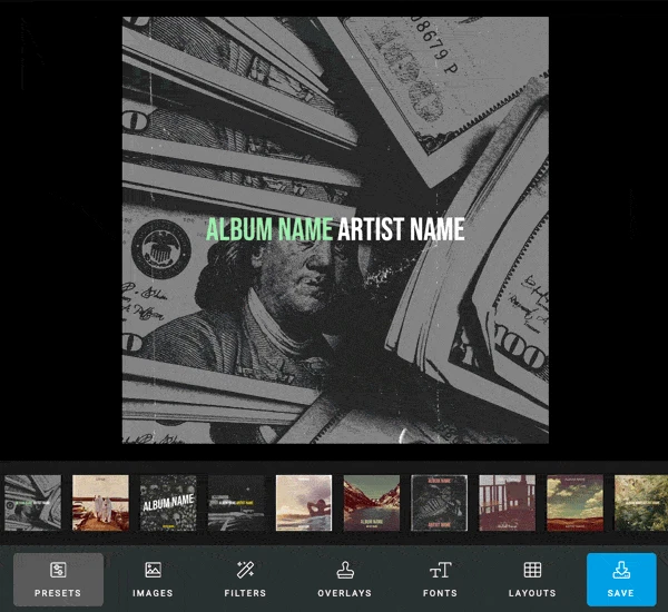 Create your Cover Art with Layouts, Images, Presets, Filters, Fonts, and Overlays