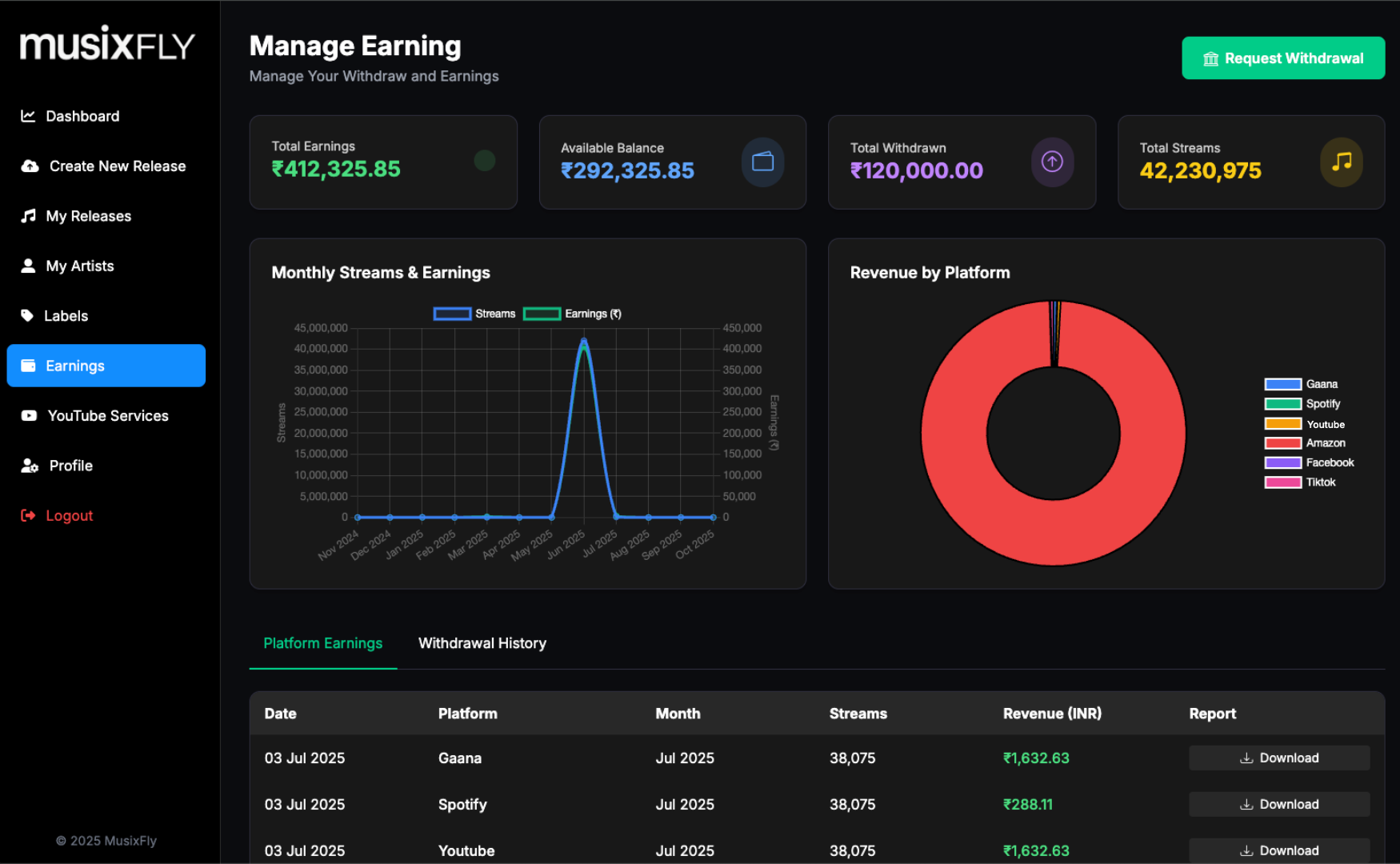 As a pioneer in indie music distribution and independent digital music distribution, Musixfly is dedicated to making music accessible while keeping artists in control.